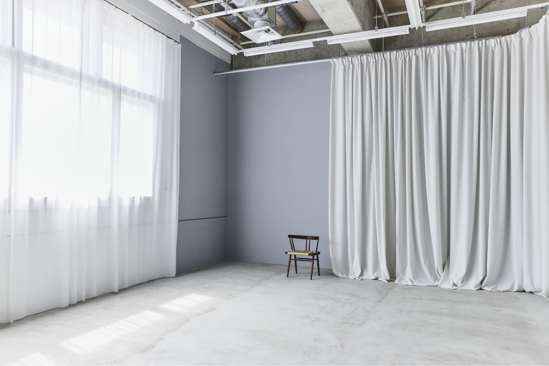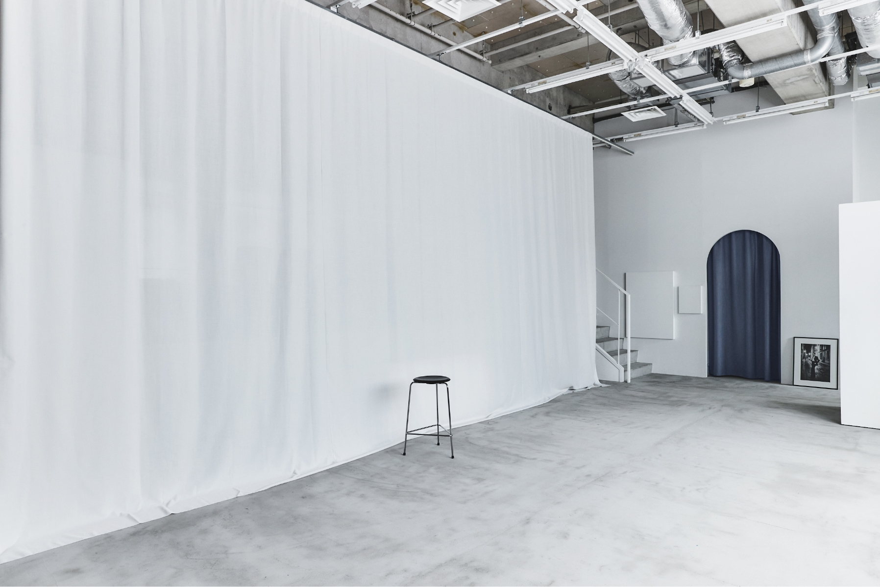 SASAHATA : Has a maximum ceiling height of 5m and a space of about 200㎡. A variety of materials are used for the floor and walls, allowing for a wide variety of shooting styles. price: still 27,000 per hour, movie 35,000 per hour the minimum period of use is 5 hours area: about 190 m² ceiling height: about 490 cm